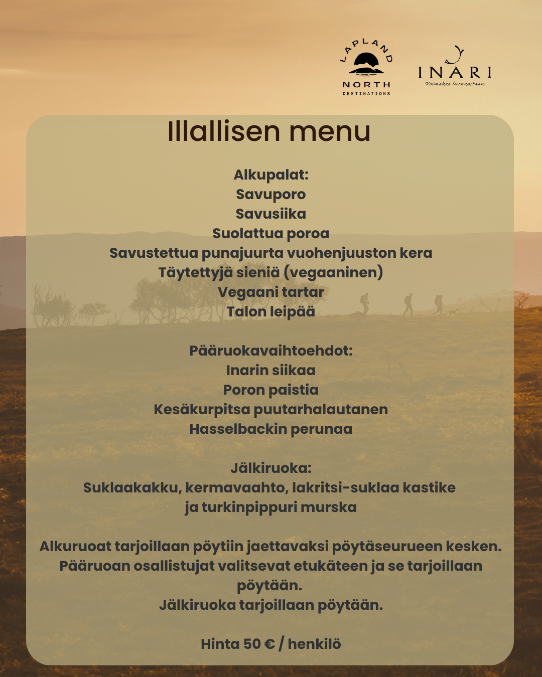 Katso iltatilaisuuden ohjelma ja menu tästä.
